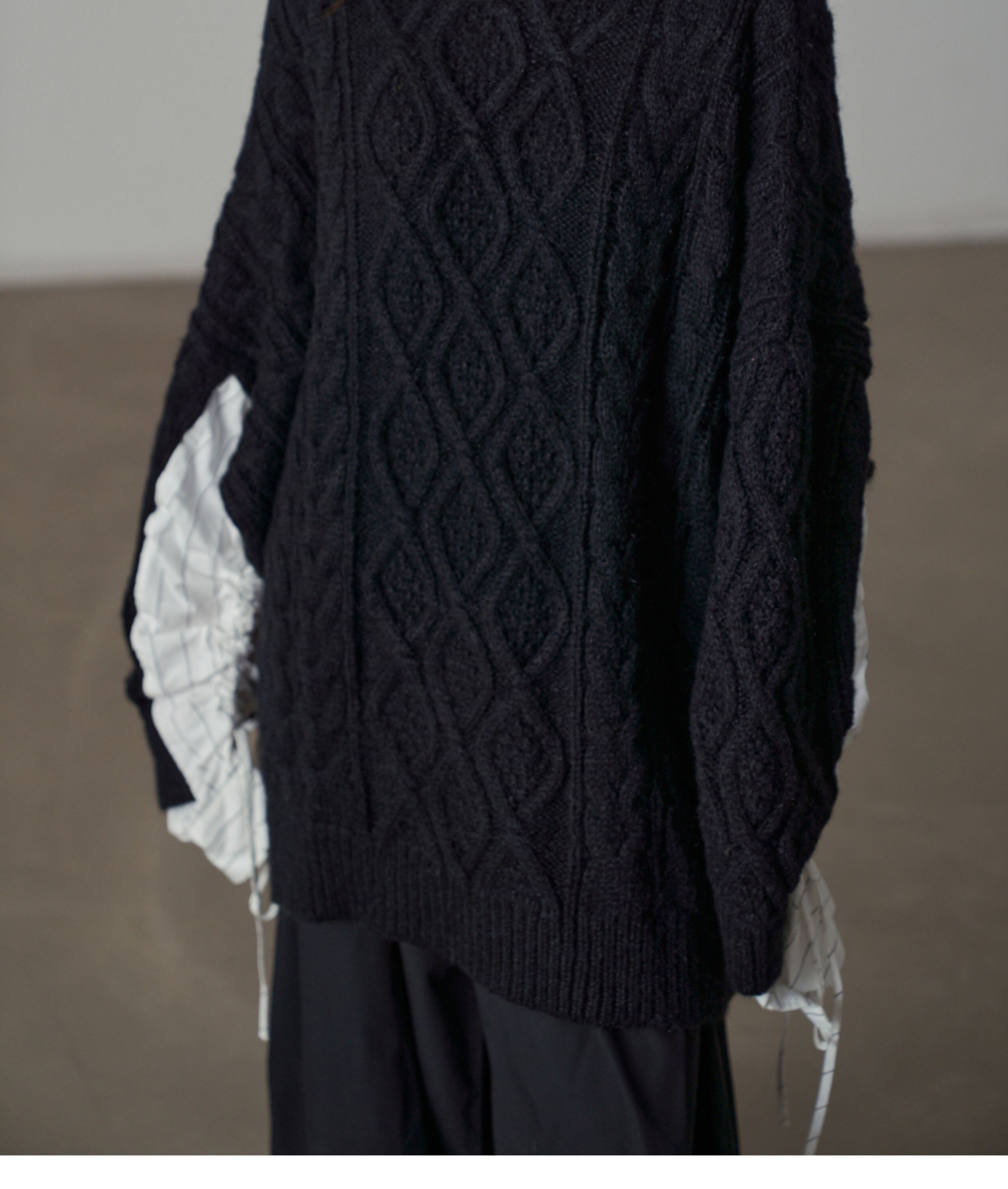 レースアップスリーブ ニット(2colors) wYmN7WfG